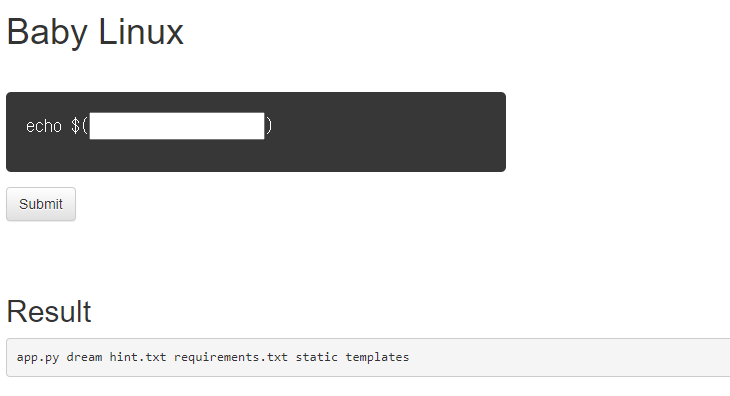 Description 리눅스 명령어를 실행하는 웹 서비스가 작동하고 있습니다. 해당 웹 서비스의 코드가 첨부파일로 주어집니다. flag.txt 파일을 찾아 출력하여 플래그를 획득하세요! 플래그 형식은 DH{...}