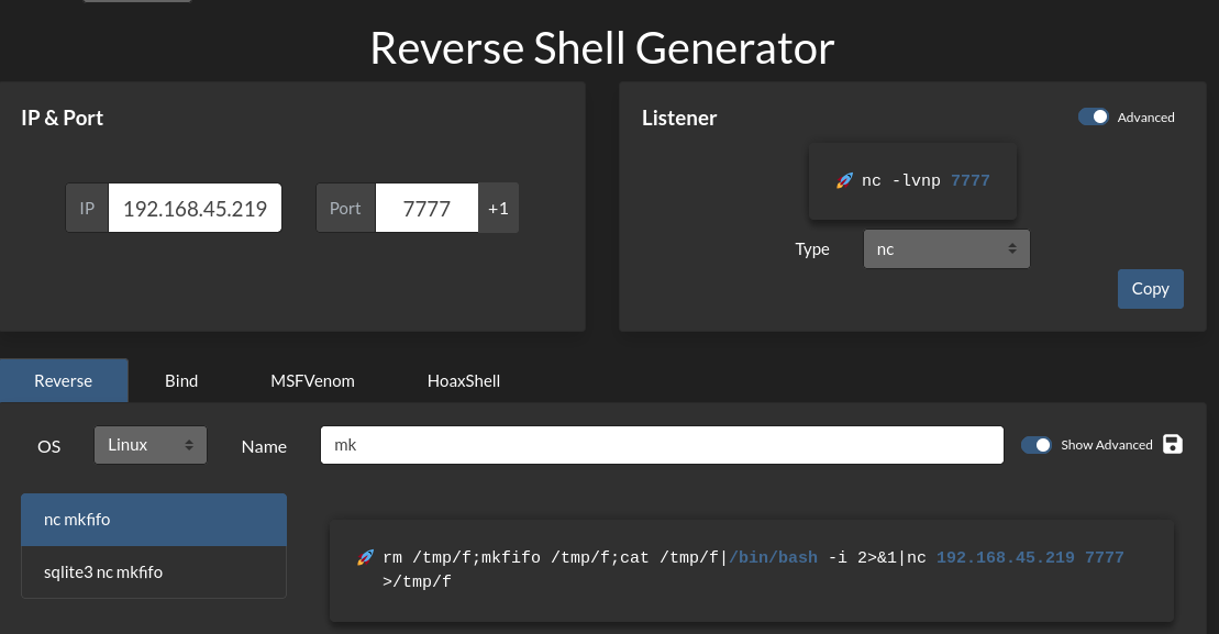 저는 revshells.com에서 mkfifo를 이용해서 리버스쉘을 획득하는 코드를 참고했습니다