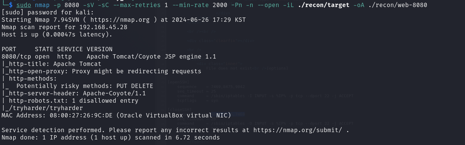 Nmap을 통한 정보 수집에서 찾진 못했지만 22번과 80번 이 필터링 되거나 닫겨있나봅니다