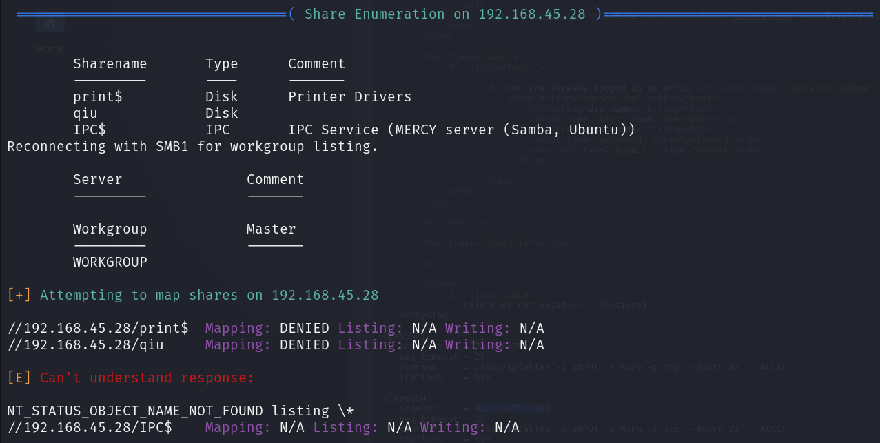 웹 configuration에서는 keepalive를 사용하는 것이 확인 되었고, smb의 qiu 유저에 대한 경로가 확인되었습니다