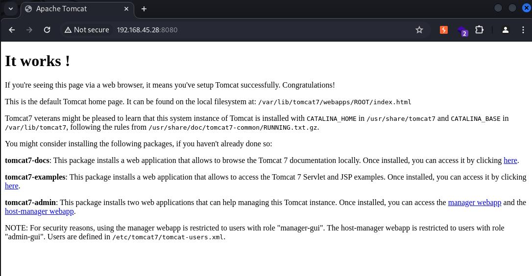 apache tomcat의 기본 웹 화면, 페이지 소스 특이사항 없음