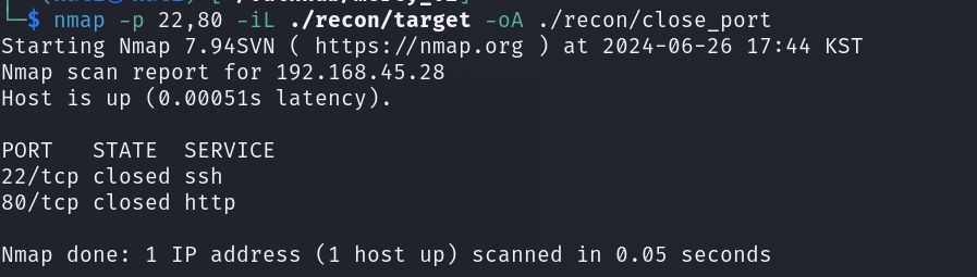 └─$ sudo nmap -sn 192.168.45.0/24 -oA ./recon/target-ip
