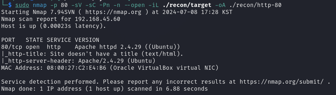 └─$ sudo nmap -sn 192.168.45.0/24 -oA ./recon/targetSubScan