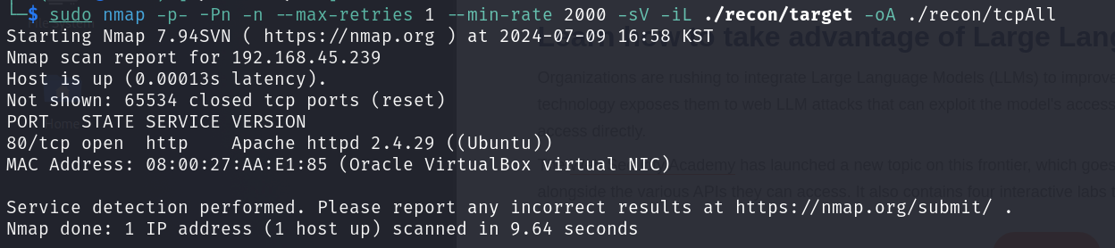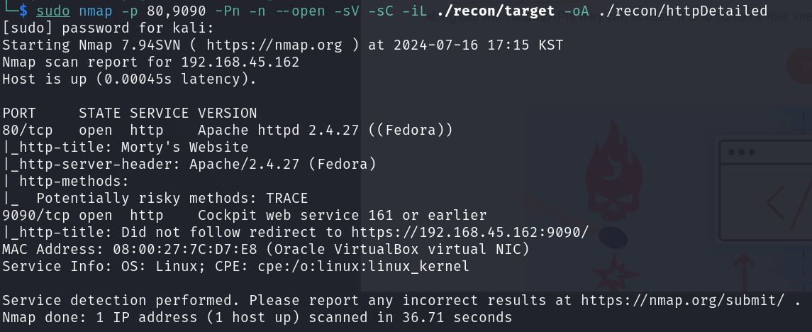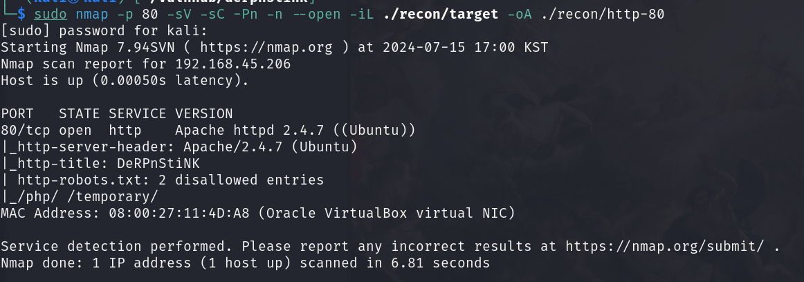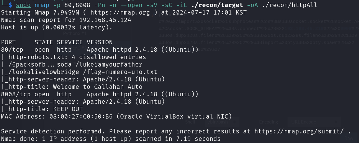 대상 호스트에서 웹 서버를 열어 줍니다
