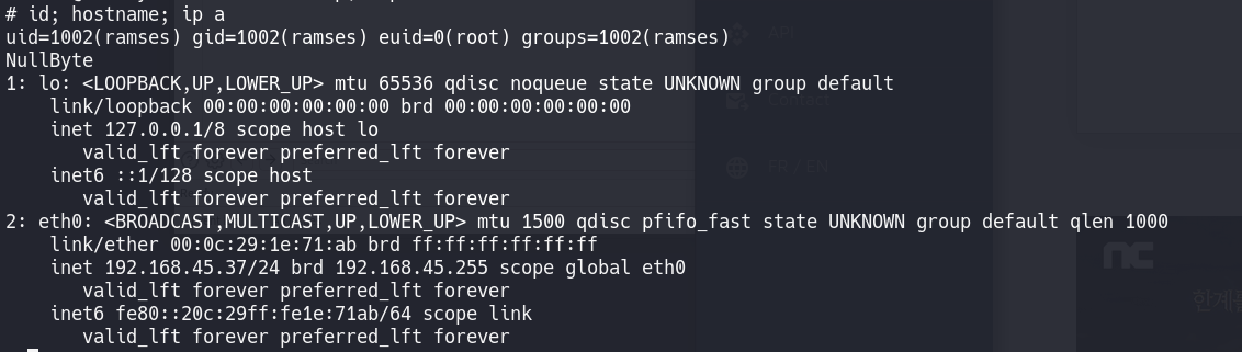 Sorry, user ramses may not run sudo on NullByte.