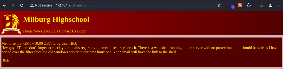 www-data@Milburg-High:/home/bob/Documents/Secret/Keep_Out$ ls